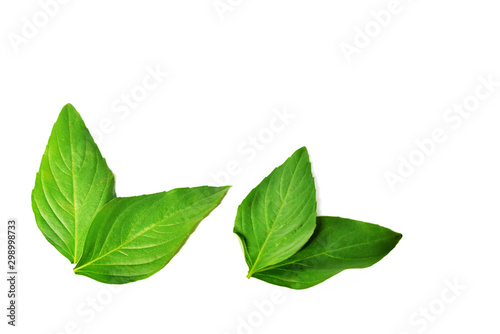© หอมกลิ่น กล้วยไม้, Obraz premium Fresh Basil leaves isolated on white background