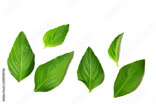 © หอมกลิ่น กล้วยไม้, Fototapeta premium Fresh Basil leaves isolated on white background