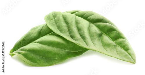 Obraz premium Fresh basil leaves on white background