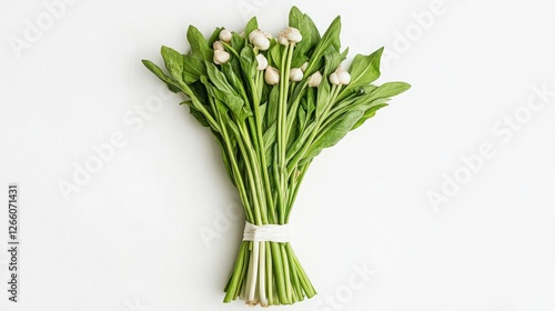© Christian Bunge, Obraz premium fresh bear's garlic bundle, flat white background, 16:9
