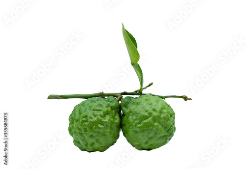 © rawin, Fototapeta premium Fresh bergamot fruit with leaf isolated on white background