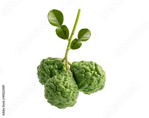 Fototapeta premium Fresh bergamot fruit with leaf on white background with clipping path.