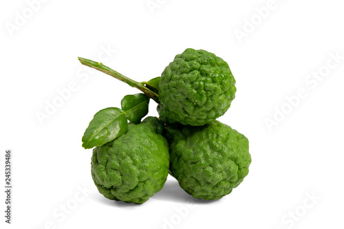 © Pcess609, Fototapeta premium fresh bergamot with leaf isolated on white background.Herb