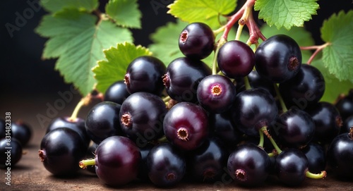 Fototapeta premium Fresh black currant on dark background.