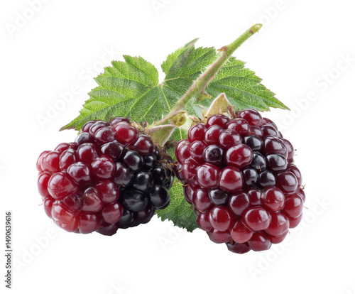 © Karina, Fototapeta premium Fresh blackberries with green leaves for healthy snacks, cut out transparent
