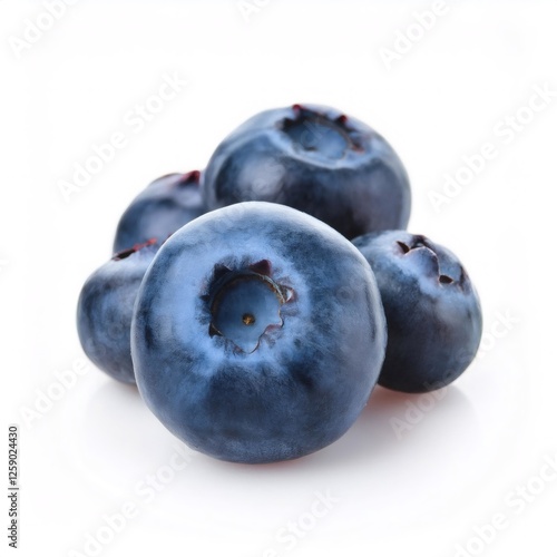 Fototapeta premium Fresh blueberries glistening, displaying natural bloom against pristine white...