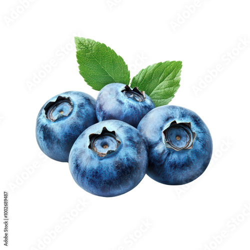 © Foxgrafy, Obraz premium Fresh blueberries with green leaves on a transparent background