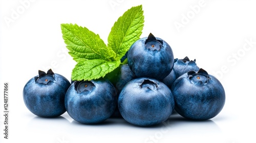 © Stocker, Obraz premium Fresh Blueberries with Natural Dew Drops and Green Leaves. Generative AI