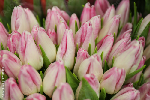 Fototapeta premium Fresh bouquet of beautiful tulip flowers, closeup