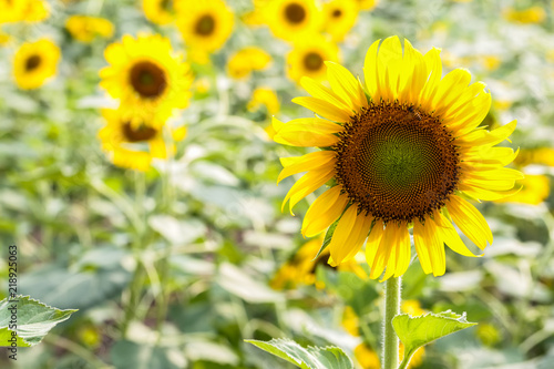 Fototapeta premium Fresh bright yellow sunflowers in nature