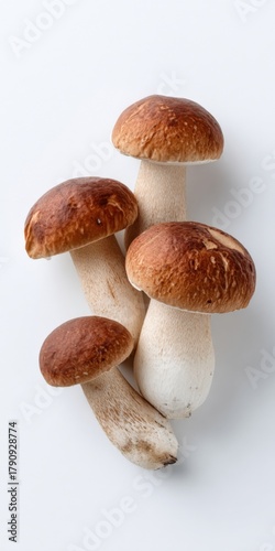 © Andrii Zastrozhnov, Obraz premium Fresh brown porcini mushrooms on white background