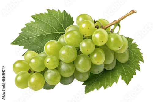 © Akash, Obraz premium Fresh Bunch of Green Grapes with Leaves and a Juice Drop