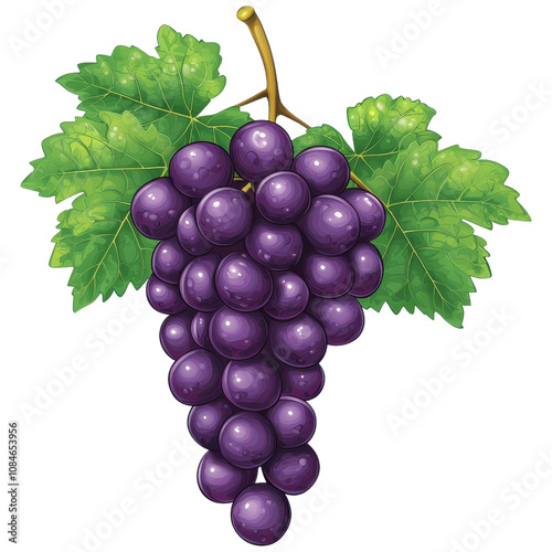 © Suryani, Fototapeta premium Fresh Bunch of Purple Grapes with Green Leaves