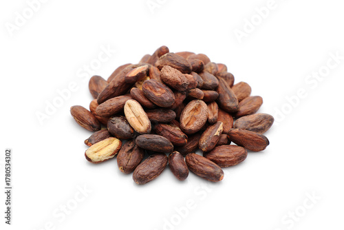 Fototapeta premium Fresh cacao beans on white background