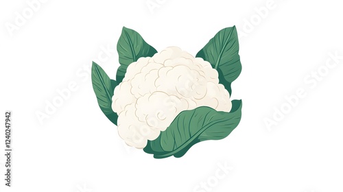 © Berkah, Obraz premium Fresh Cauliflower Head with Green Leaves