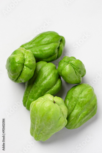Fototapeta premium Fresh chayote (Sechium edule) isolated with clipping path and on white background, vegetables and fruits