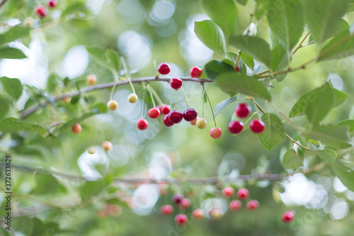 © donikz, Obraz premium fresh cherries hanging on the tree