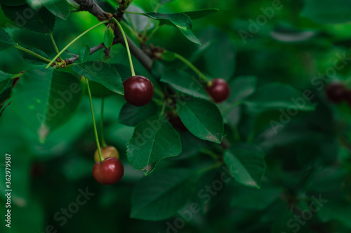 © ivankondyrev, Obraz premium fresh cherry on a beautiful background