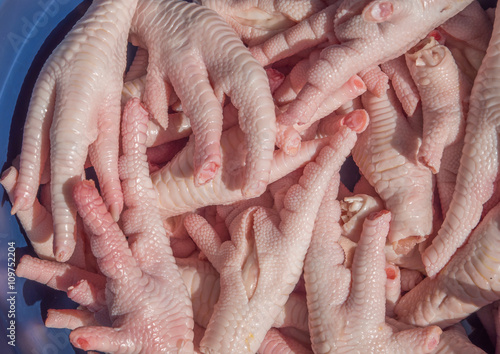 Fototapeta premium Fresh chicken foot in a bowl prepared for cooking.