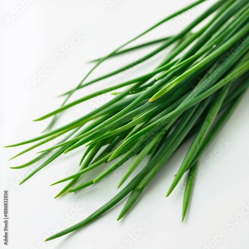 Fototapeta premium Fresh Chives on White Background Close-Up