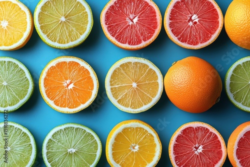 Fototapeta premium Fresh citrus fruit arrangement showcasing vibrant colors and variety for...