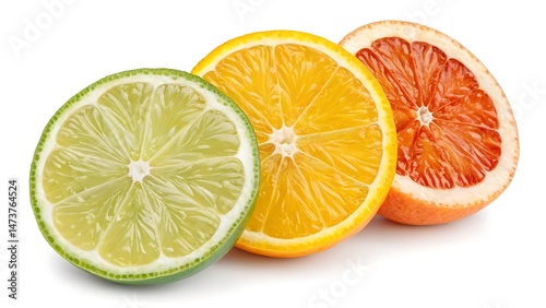 © Sojib_Islam, Obraz premium Fresh Citrus Fruit Halves – Lime, Lemon, and Grapefruit