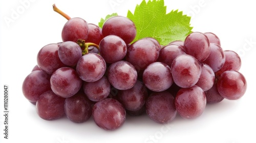 © GenZGraphics, Obraz premium Fresh cluster of red grapes with vibrant green leaf isolated on white background showcasing natural texture and rich color for culinary use