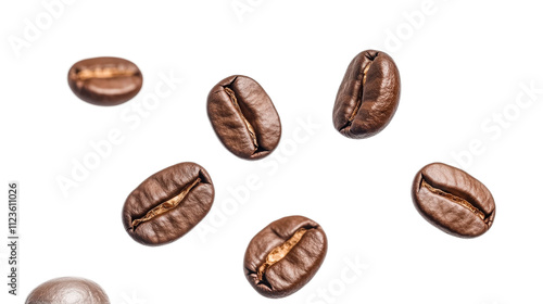 © Coffee Cafe Lover, Obraz premium Fresh Coffee Beans Falling on White Background for Culinary Use