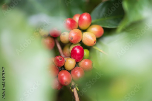 Obraz premium Fresh coffee beans on tree branches