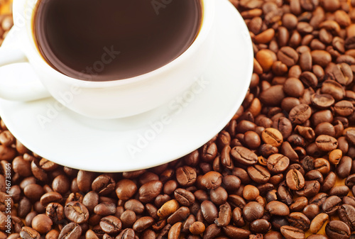 Fototapeta premium fresh coffee in the white cup, coffee and coffee beans