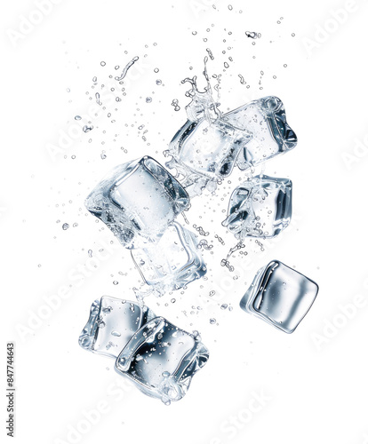 Obraz premium fresh cold splashing ice cubes isolated on white or transparent png