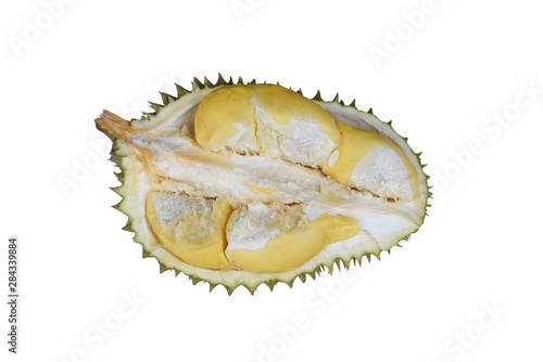© Onkamon, Fototapeta premium Fresh cut durian isolated on white background.