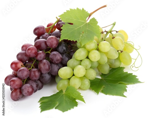 Fototapeta premium Fresh delicious Grapes splashing with leaves, cut out photo.