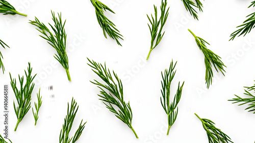 Obraz premium Fresh Dill Sprigs, Green Herb Pattern