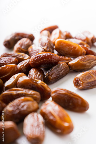 © ILHAM_PS, Obraz premium Fresh dried dates fruit on white isolated background.