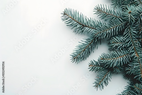 Obraz premium Fresh Evergreen Sprigs on a Light Background