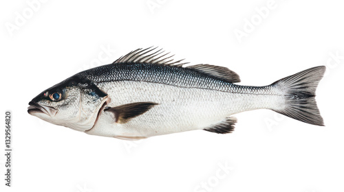 Fototapeta premium Fresh fish on a white isolated background, perfect for culinary presentations.