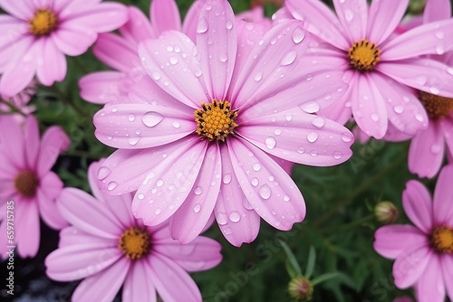 Obraz premium Fresh Flowers with Water Drops on Pink Petals After the Rain - Created with...