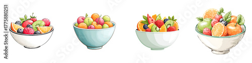 © R Studio, Fototapeta premium Fresh Fruit Salad Bowls: Healthy and Colorful Dessert Variety