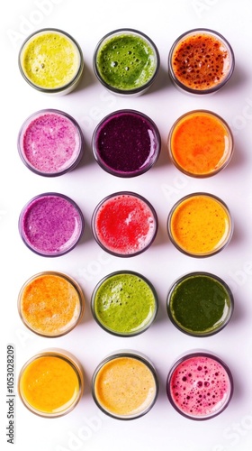 Naklejka premium Fresh fruit smoothies with assorted ingredients served in glass