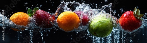 © matoya, Fototapeta premium Fresh Fruit Splashing in Water