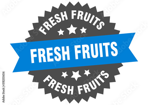 Fototapeta premium fresh fruits sign. fresh fruits circular band label. round fresh fruits sticker