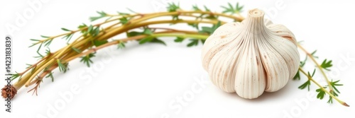 Obraz premium Fresh garlic bulbs with visible cloves, isolated on a clean white background,...