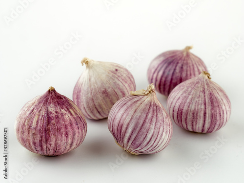 © Игорь Кислинский, Fototapeta premium Fresh garlic on market table closeup photo