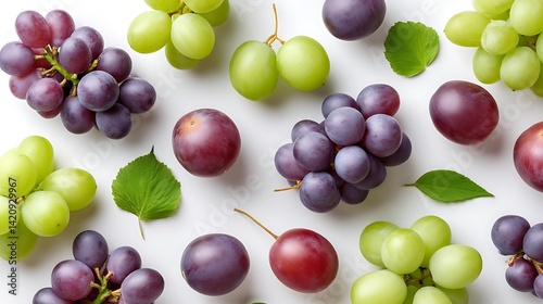 Obraz premium Fresh Grapes Variety on White Background Ideal for Health and Nutrition Concepts, Culinary Art, or Summer Themes