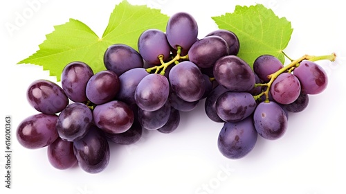 Fototapeta premium Fresh grapes with leaves isolated on white background. Generative Ai