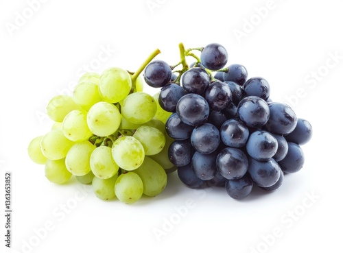 © BWS Stock, Fototapeta premium Fresh Green and Dark Grapes Bunch Isolated on White Background
