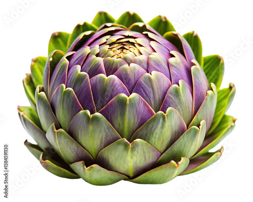Obraz premium Fresh green artichoke isolated on clean white background, top view botanical...