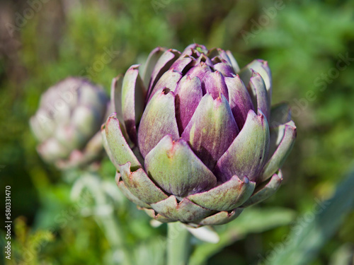 Fototapeta premium Fresh green artichoke vegetable in the garden.