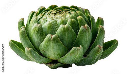 © Putra, Fototapeta premium Fresh Green Artichoke with Leafy Texture on Transparent Background for Culinary Use